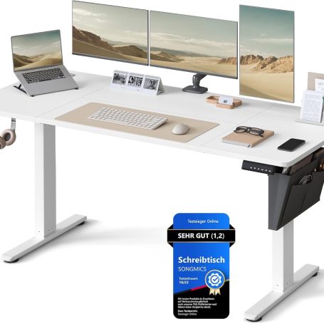 Der elektrische SONGMICS Schreibtisch (160x70 cm) ermöglicht stufenloses Wechseln zwischen Sitzen und Stehen – für ergonomisches, produktives Arbeiten im Homeoffice.